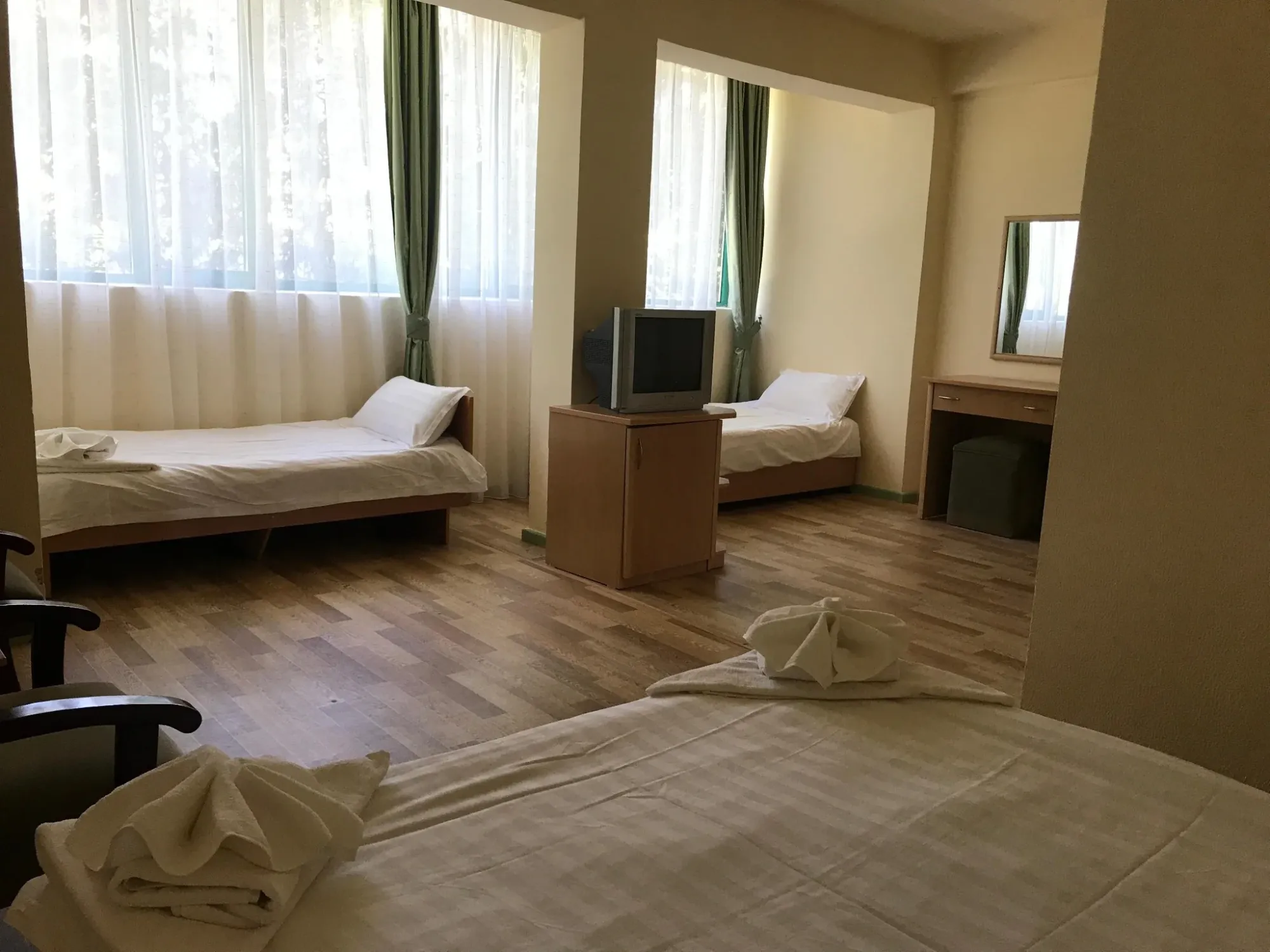 Номера отличаются увеличенной площадью и более свободной планировкой, что особенно важно при размещении четырех человек. На первом этаже находятся варианты без балкона, на верхних этажах — номера с балконами и более открытым видом на территорию пансионата.