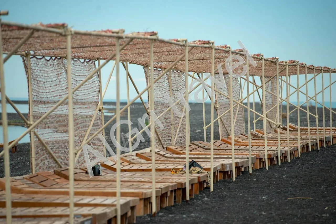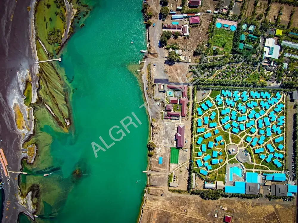 На косе (нажмите, чтобы узнать - что такое коса), галечный, вход в озеро Алаколь пологий, оборудованный шезлонгами и теневой зоной. Широкий пляж расположен в 300 метрах от гостиницы, для удобства ходит бесплатный паром до косы. От пристани до косы плыть около 2 минут .