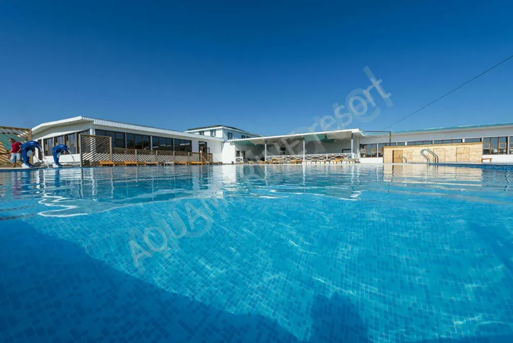 В отеле Aquamarine resort есть Wi-Fi, сауна, 2 подогреваемых бассейна открытых и один крытый, номера в современном стиле со всеми удобствами - домики и коттеджи, огромная территория, детские площадки, столовая, диско бар.