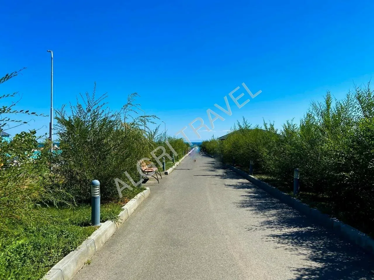 Отель прекрасно озеленен - аккуратная отделка корпусов, клумбы, газон, елочки создают уютную атмосферу. Красивые прогулочные аллеи с лавочками, фонтаны, ночное освещение всей территории. Дорога до берега асфальтирована и освещена.