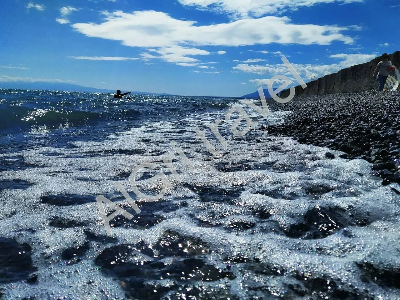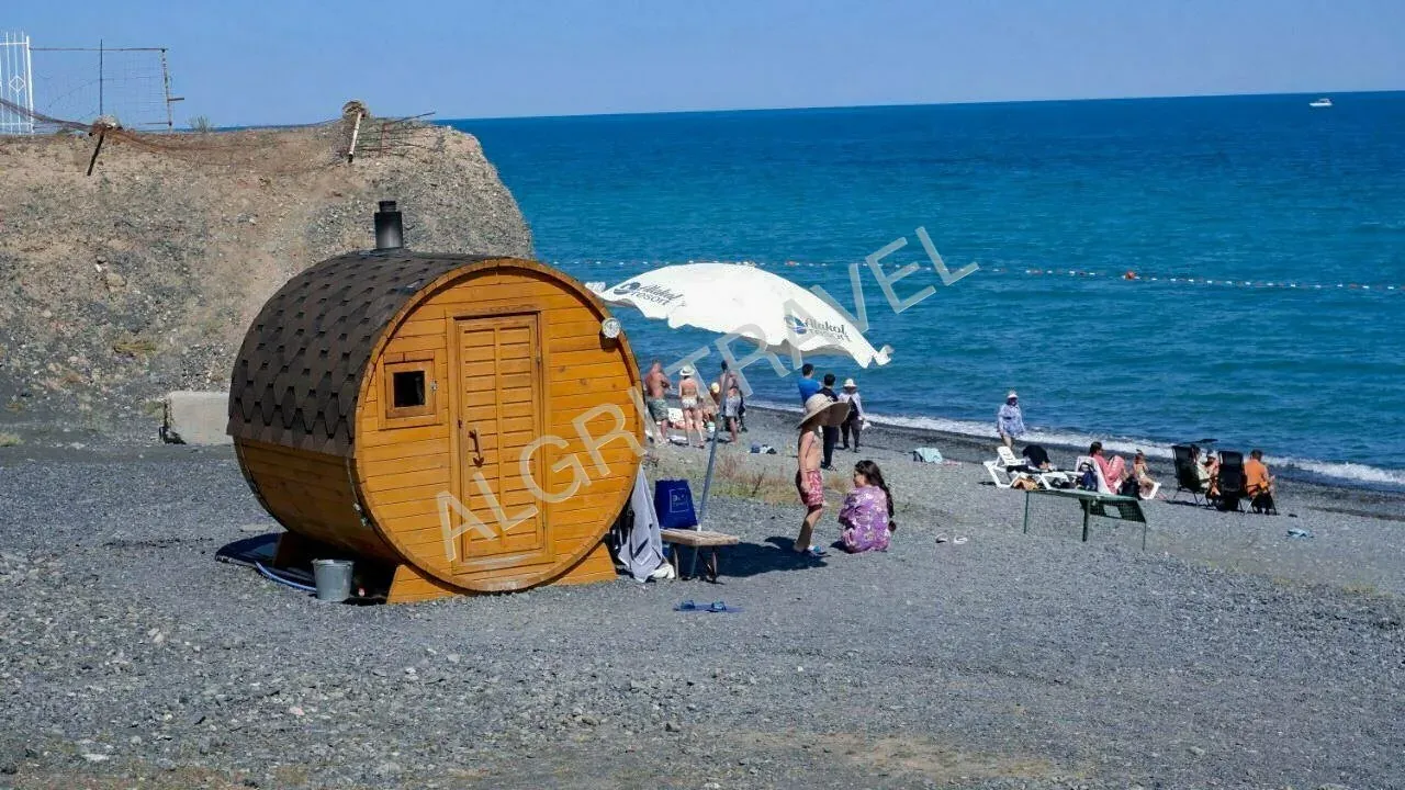 На Пляже зонтики, шезлонги (бесплатно). На территории имеется мини маркет.