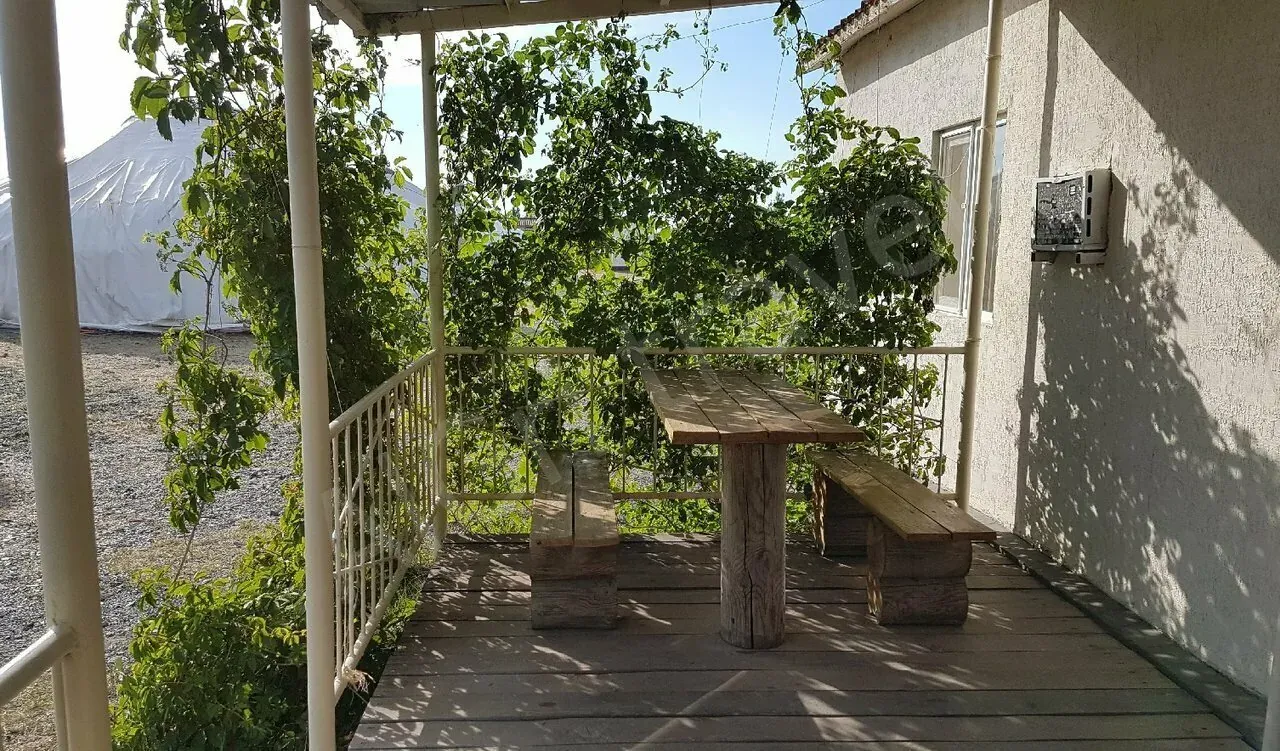 Перед входом в номер оборудована веранда со столом и двумя лавочками для отдыха на свежем воздухе.