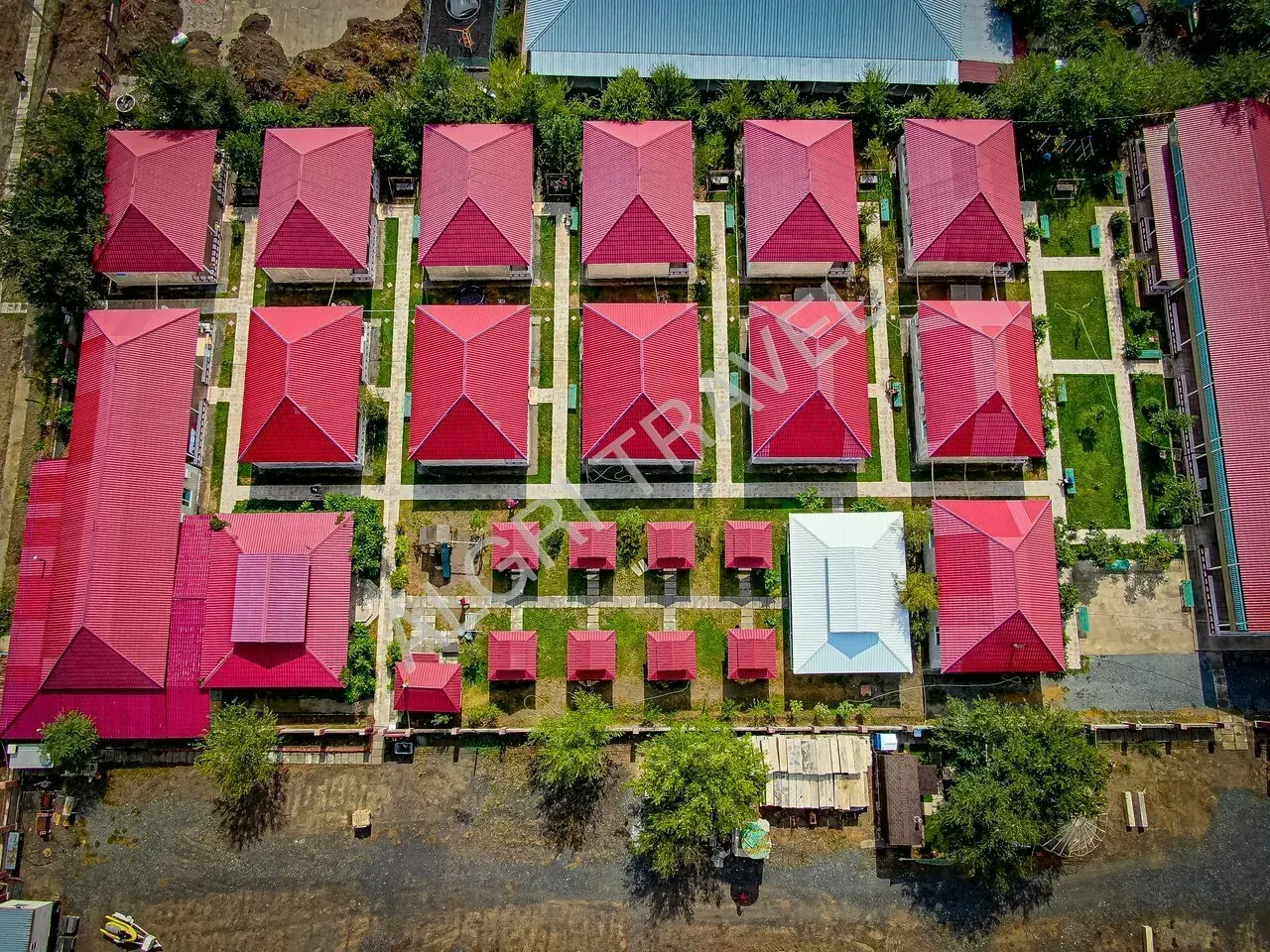 - В номерах: В каждой комнате имеются новые кровати с удобными матрасами, стол письменный, стулья, холодильник, телевизор с кабельным телевидением (Отау ТВ), вешалка для одежды, москитная сетка. Санузел и душ в каждом номере.