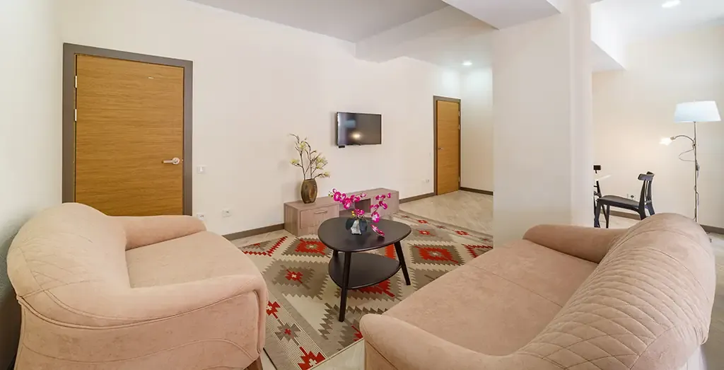 Просторный двухкомнатный номер категории Luxe, созданный для комфортного и спокойного отдыха. Интерьер выполнен в натуральных оттенках с элементами современного европейского дизайна, создавая атмосферу уюта и гармонии.