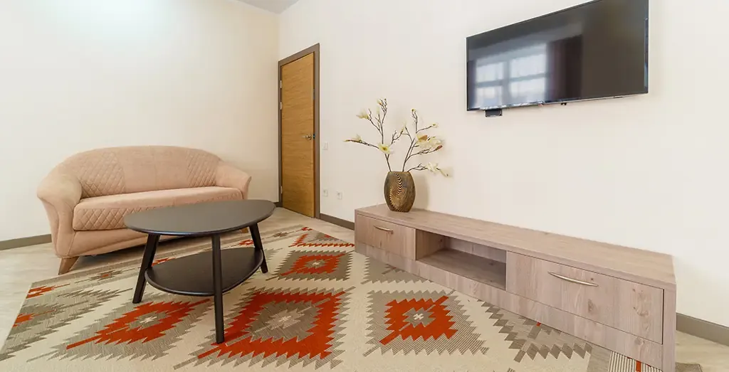 - зона отдыха с мягким диваном, журнальным столиком и телевизором