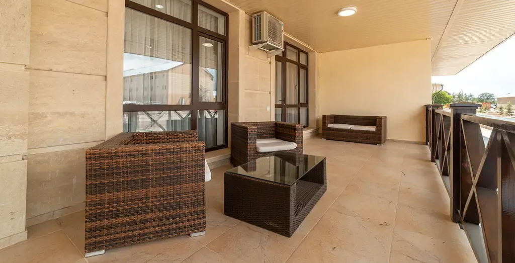 - лоджия с плетёной мебелью