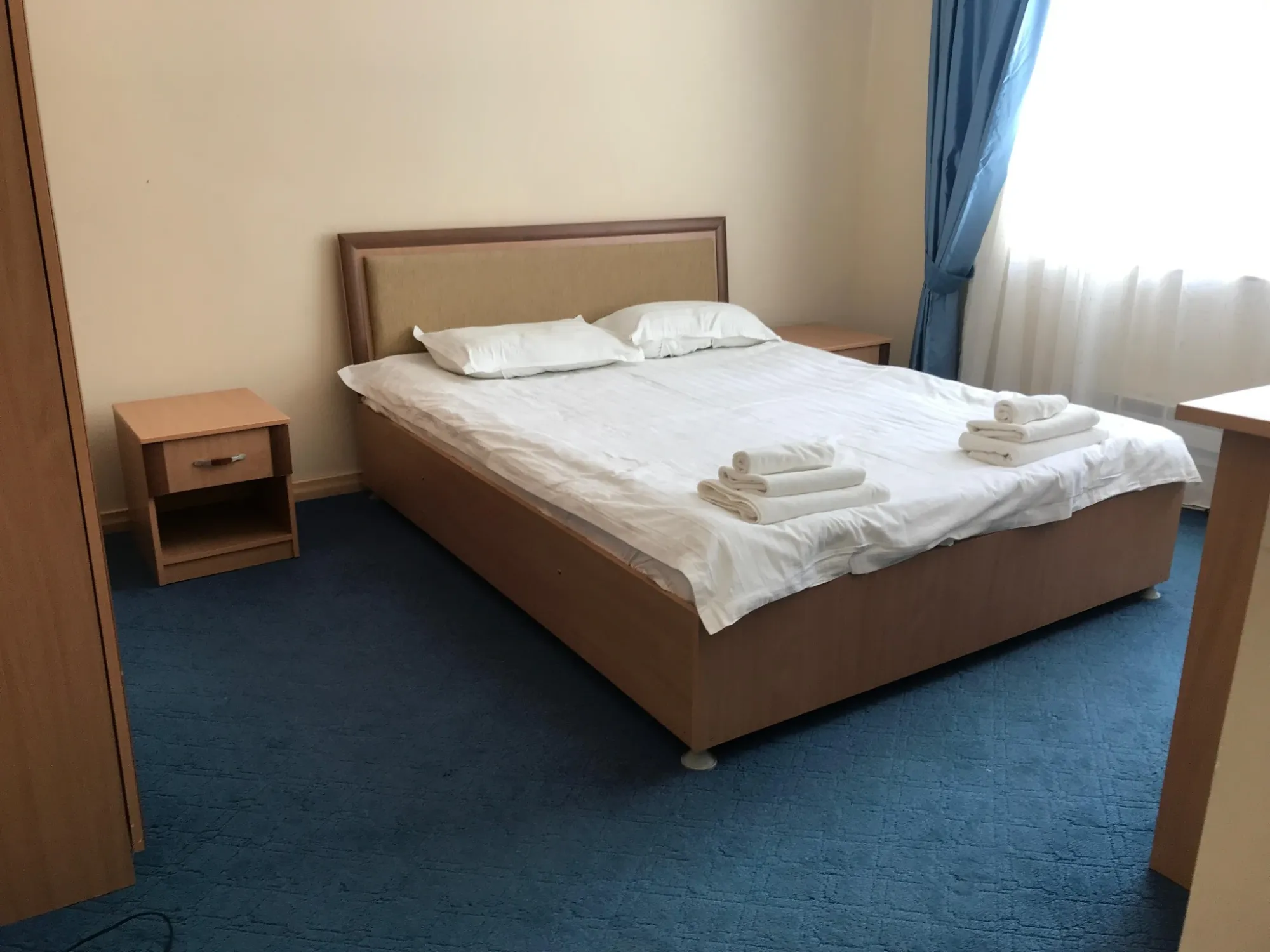 - Спальня: двуспальная кровать, шкаф, тумбочки;