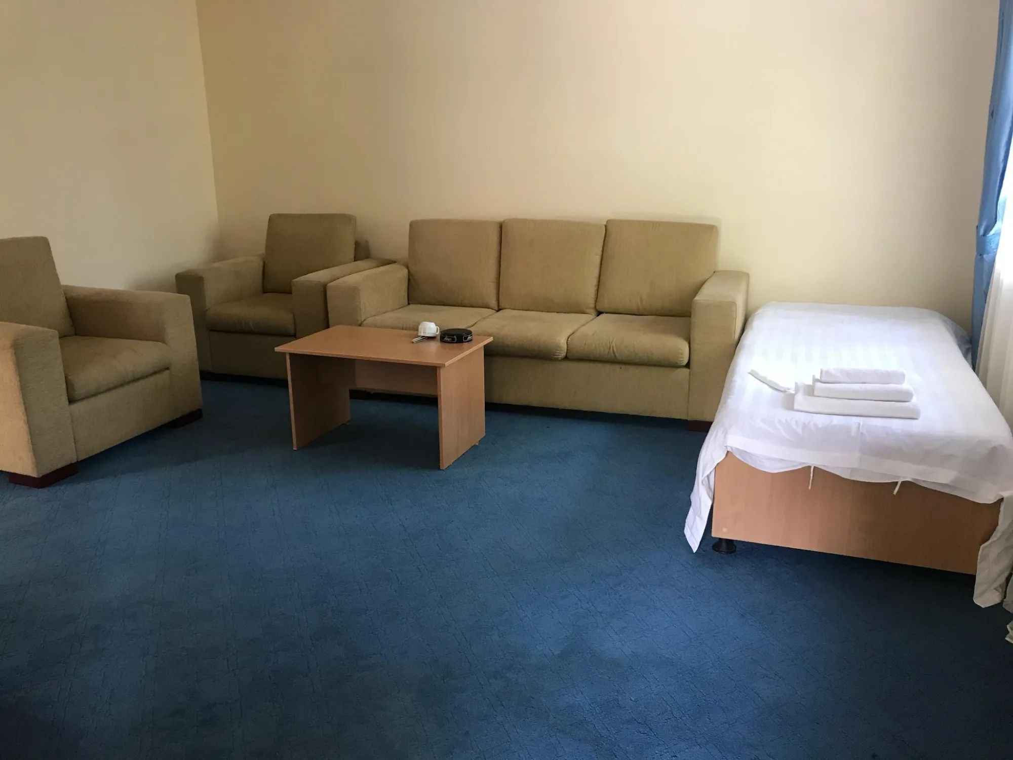 - Гостиная: диван (не раскладывается), кресла, стол;