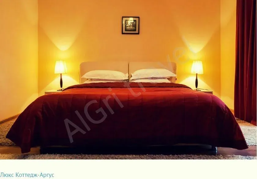 Коттедж «Аргус» - 3-х комнатный 4-х местный. В гостиной - диван, кресла, журнальный столик, телевизор, холодильник, кухонный уголок, обеденный стол, стулья. В коттедже два санузла, один из которых совмещен с ванной комнатой. В одной из спален двуспальная кровать, в другой две раздельные. В данной категории номеров есть терраса с плетеной мебелью.