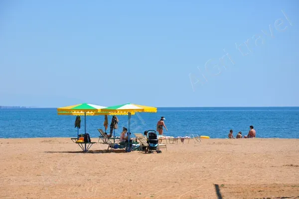 Собственный, песчаный, в 250 метрах от отеля оборудованный шезлонгами и зонтиками; пирс, различные водные аттракционы.