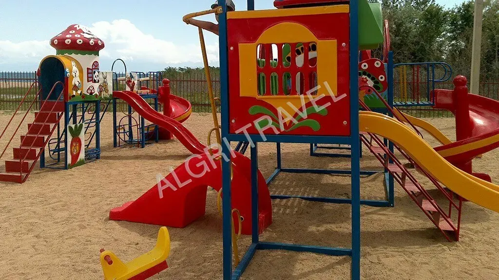 игровая площадка 0,5 га (спортивный комплекс, игротека, водные аттракционы, экскурсии, зал компьютерных игр, караоке, видеосалон). Дети до 5 лет принимаются бесплатно без места и питания (обязательно свидетельство о рождении).
