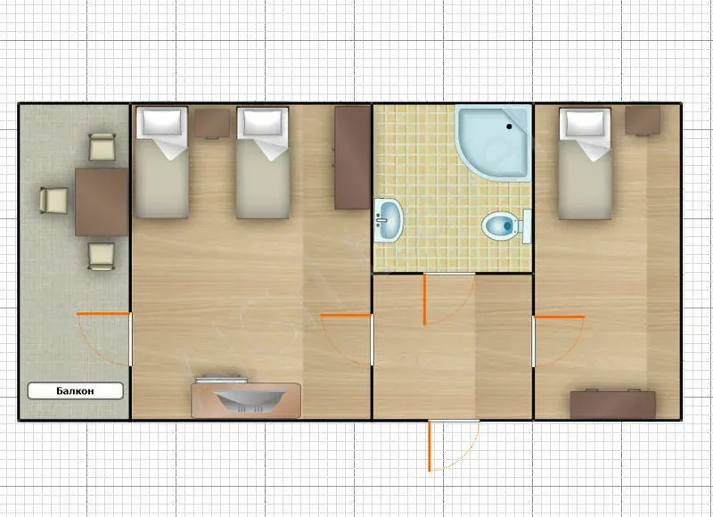 - двуспальная кровать и односпальная кровать или 3 односпальные кровати