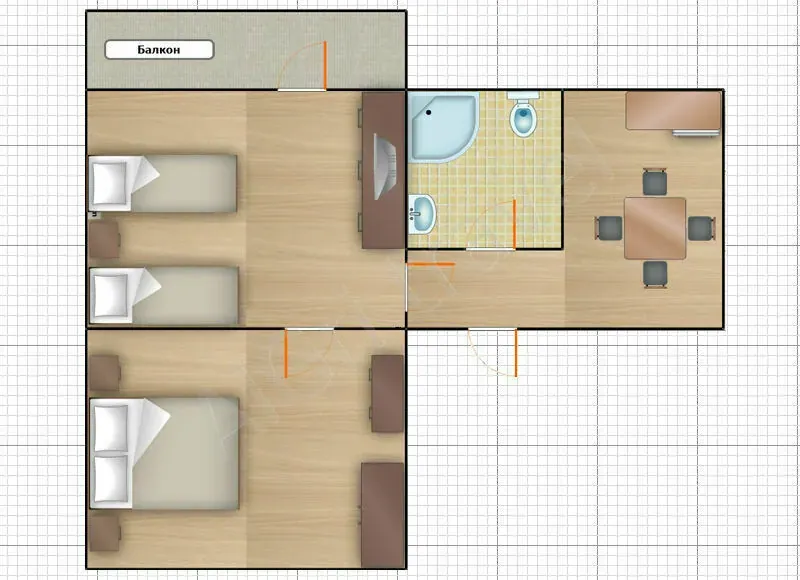 - Столовая — 5,7 кв.м