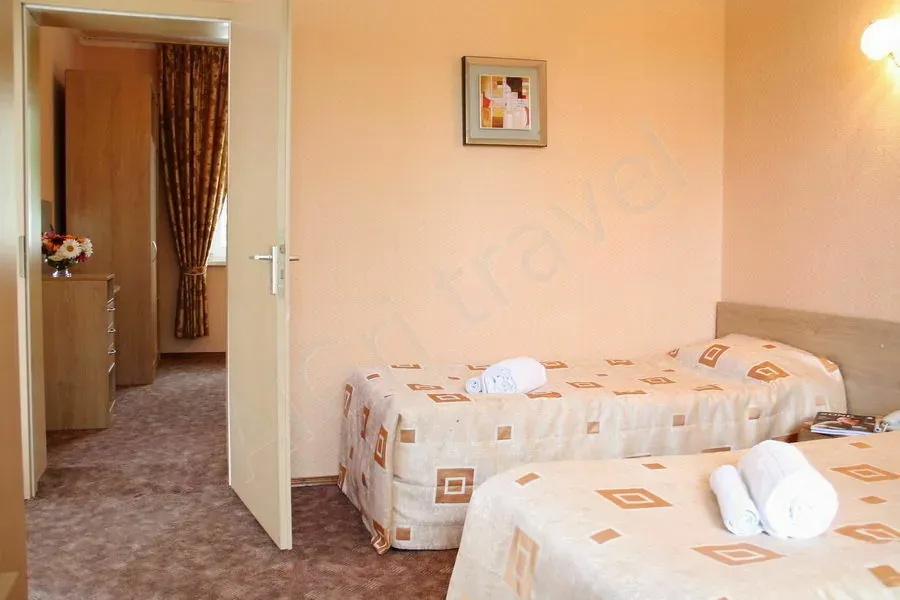 Коттедж «Чынар» 4-местный — удобный вариант размещения для семьи или компании до 4 человек. Номер состоит из двух отдельных спален и небольшого холла, оборудованного под столовую зону.