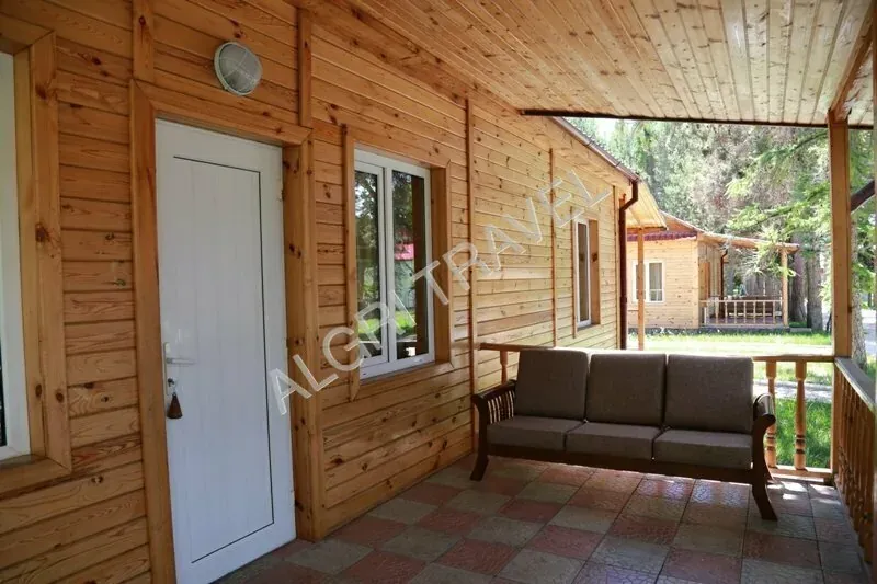 Деревянные коттеджи из бруса хвойных пород. Общее количество номеров - 44, на 110 человек.