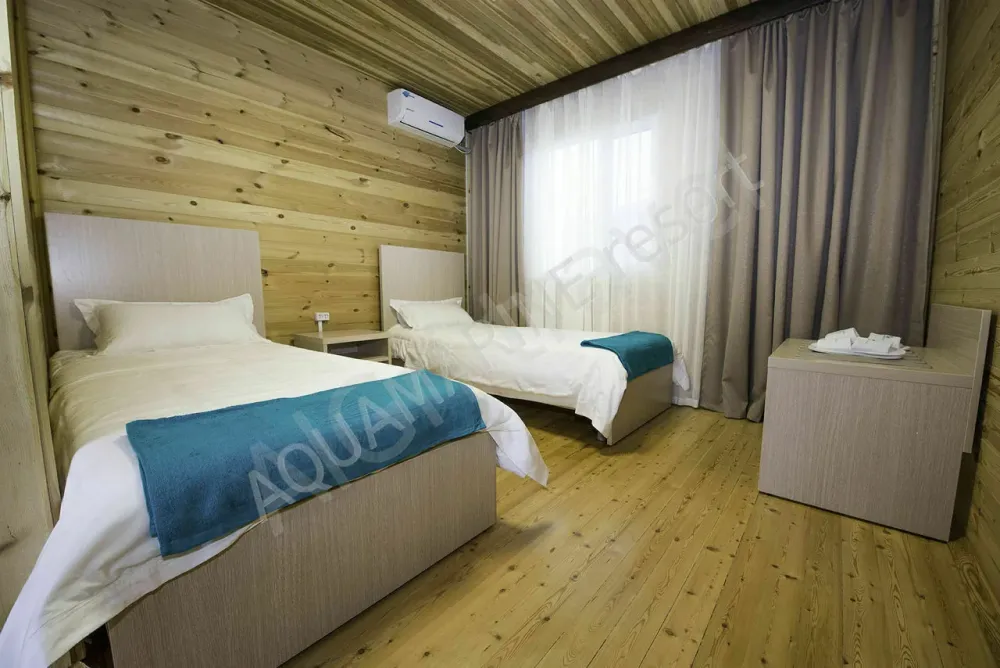 Cottage: Отдельно стоящий трехкомнатный 4-местный номер(сруб) с двумя спальнями и гостиной.