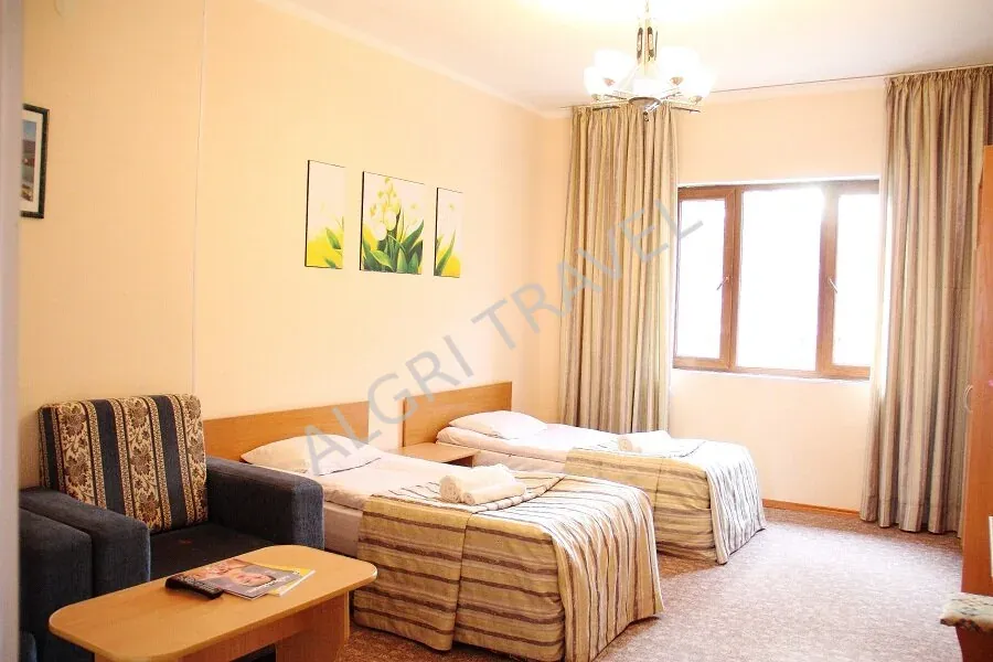 Коттедж Толкун — удобный однокомнатный номер для размещения двух человек. Номера расположены на первом и втором этажах.