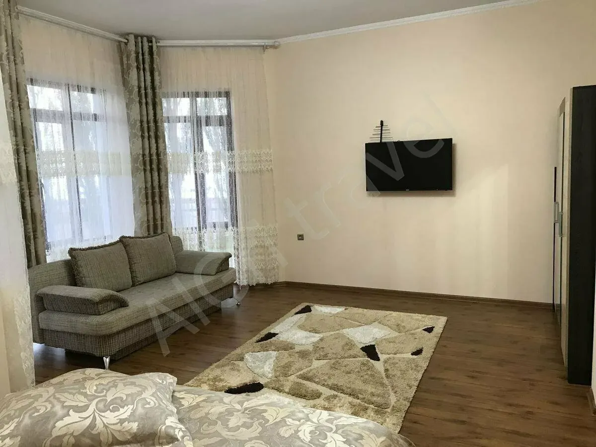 На первом этаже просторный зал, спальня с одной двуспальной кроватью, кухня, сан узел. На втором этаже две спальни в каждой из которых по две полутороспальные кровати и один сан узел. На большой террасе печь для шашлыка, барбекю и казаном. Если Вы ищете большой коттедж на Иссык Куле для всей семьи, то присмотритесь к коттеджам Лазурного берега.