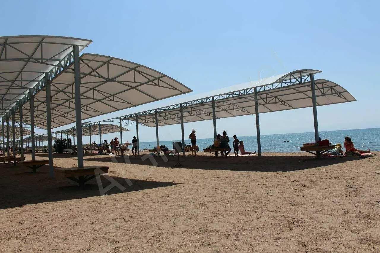 Собственный, песчаный. Прекрасно оборудован навесами, шезлонгами. Все виды водных развлечений. Есть пирс