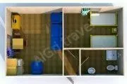 Двуспальная кровать, сплит -система в гостиной, холодильник, ТВ, СВЧ - печь, кухонный гарнитур, набор столовой и чайной посуды, эл/чайник, совмещенный санузел с душем. Площадь номера - 42 кв.м.
