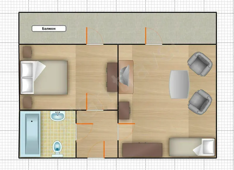 - Санузел — 2,8 кв.м