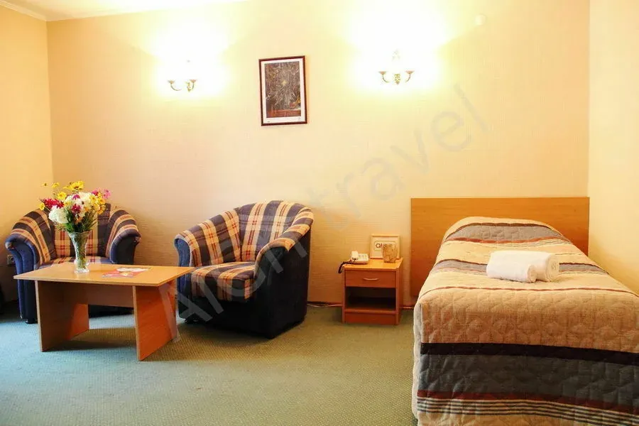 Просторный двухкомнатный номер идеально подходит для размещения семьи или небольшой компании до 3 человек. Номер состоит из отдельной спальни и уютной гостиной. Номера расположены в главном корпусе пансионата Акун Иссык-Куль.