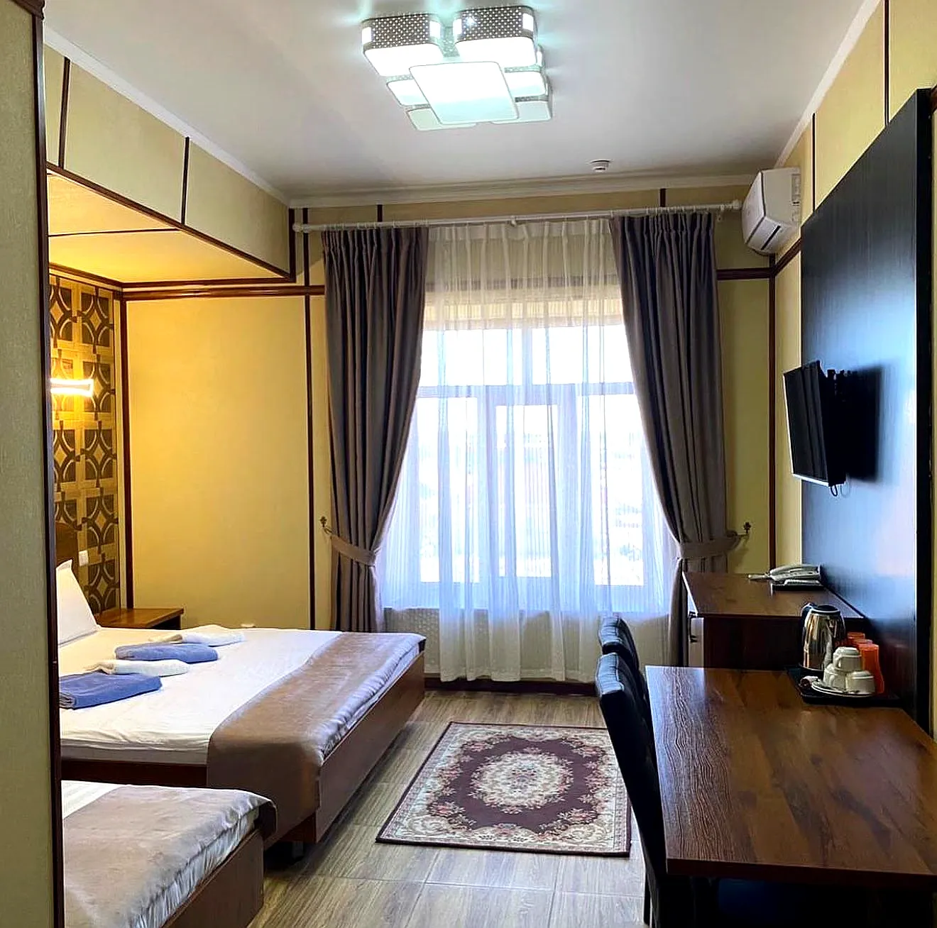 В отеле представлены категории номеров для двоих, семей с детьми и компаний. Все варианты оснащены необходимыми удобствами для комфортного проживания: кондиционер, телевизор, холодильник и собственный санузел с душем.
