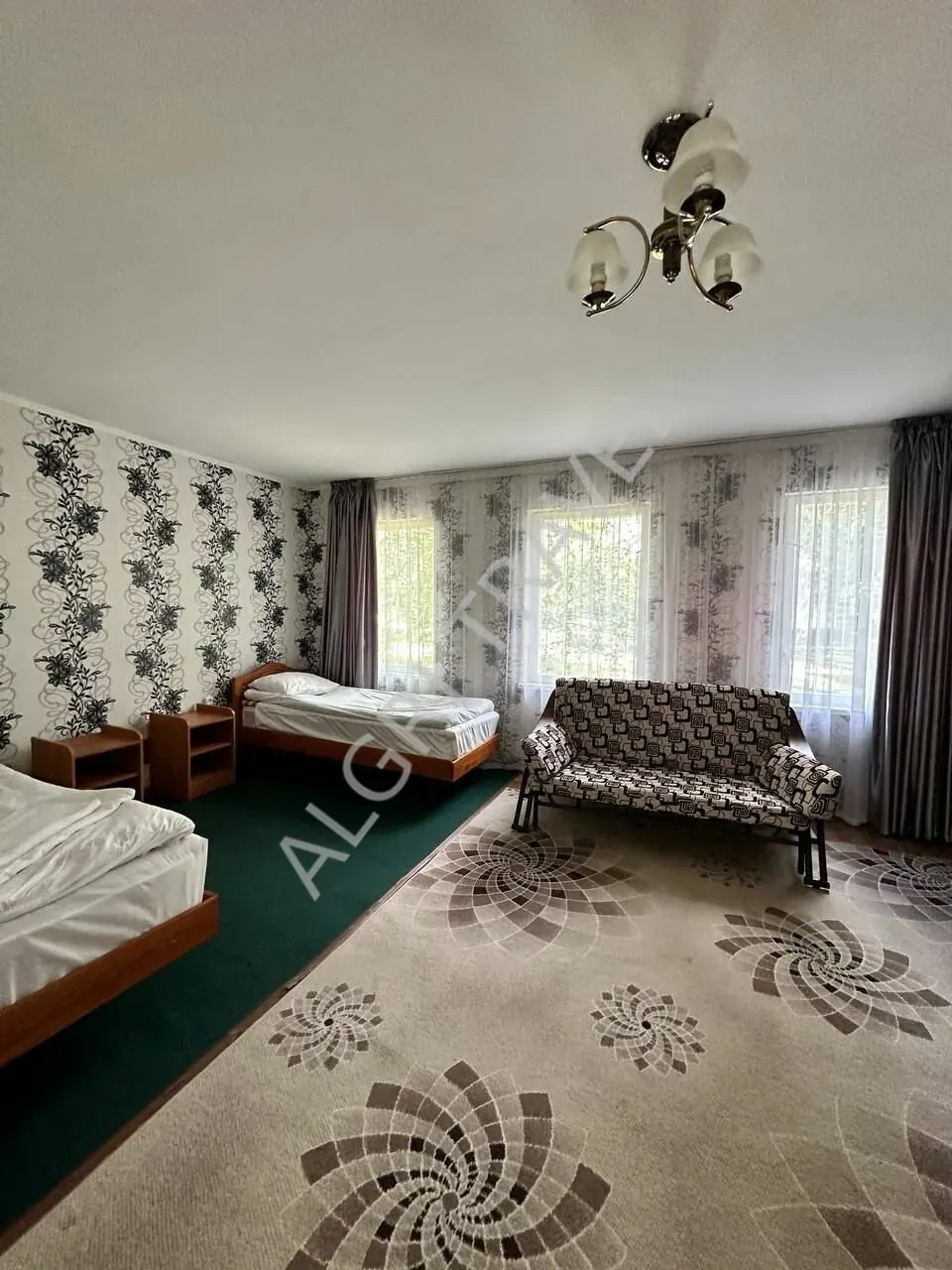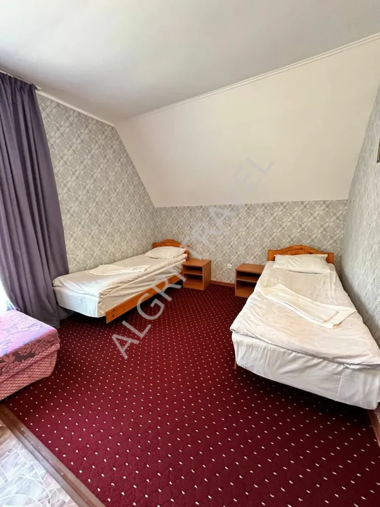 Котедж (Бриз 2): 2-хместный номер на втором этаже. В номере: кровати, шкаф, телевизор с кабельным ТВ, стол и стулья, набор чайной посуды, холодильник, диван,сан узел. Есть возможность поставить одно дополнительное место.