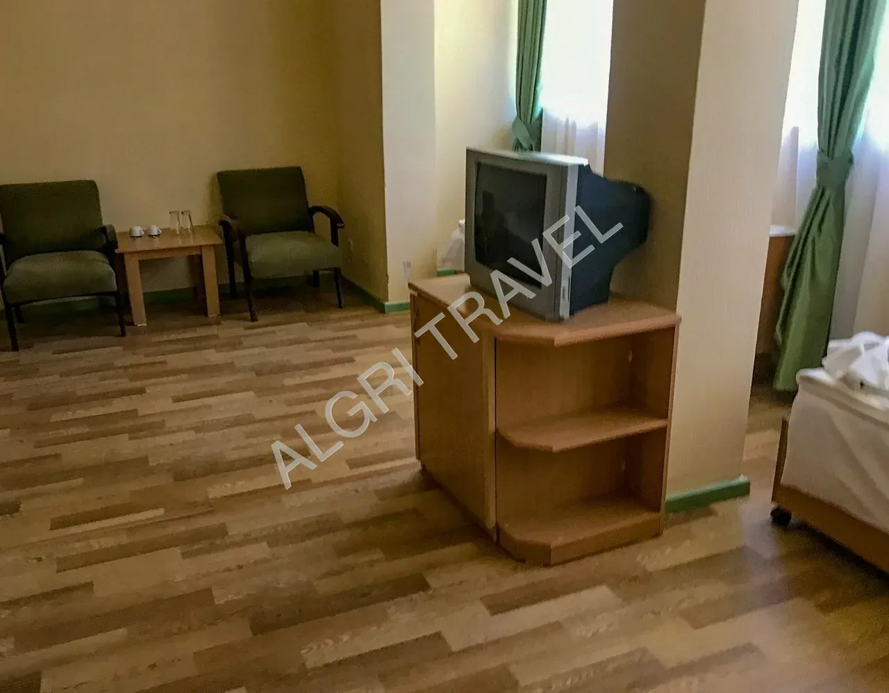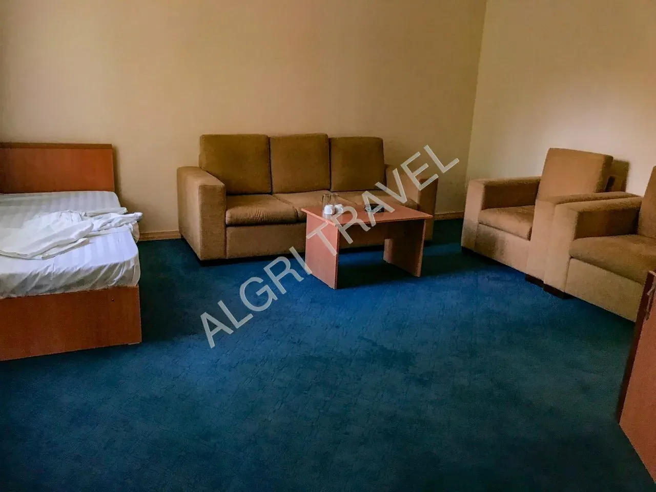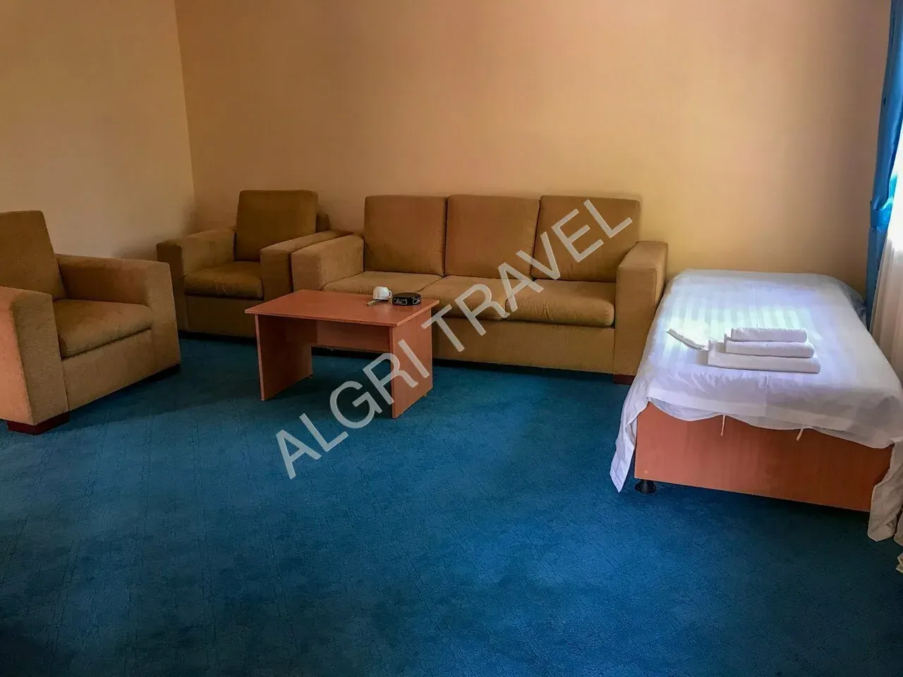 В пансионате два трехэтажных корпуса. Все номера - двухместные, с возможностью поставить дополнительную кровать. Первый этаж - без балконов, но с двуспальной кроватью и удобным доступом без лестниц. Второй и третий - с балконами и двумя раздельными кроватями.
