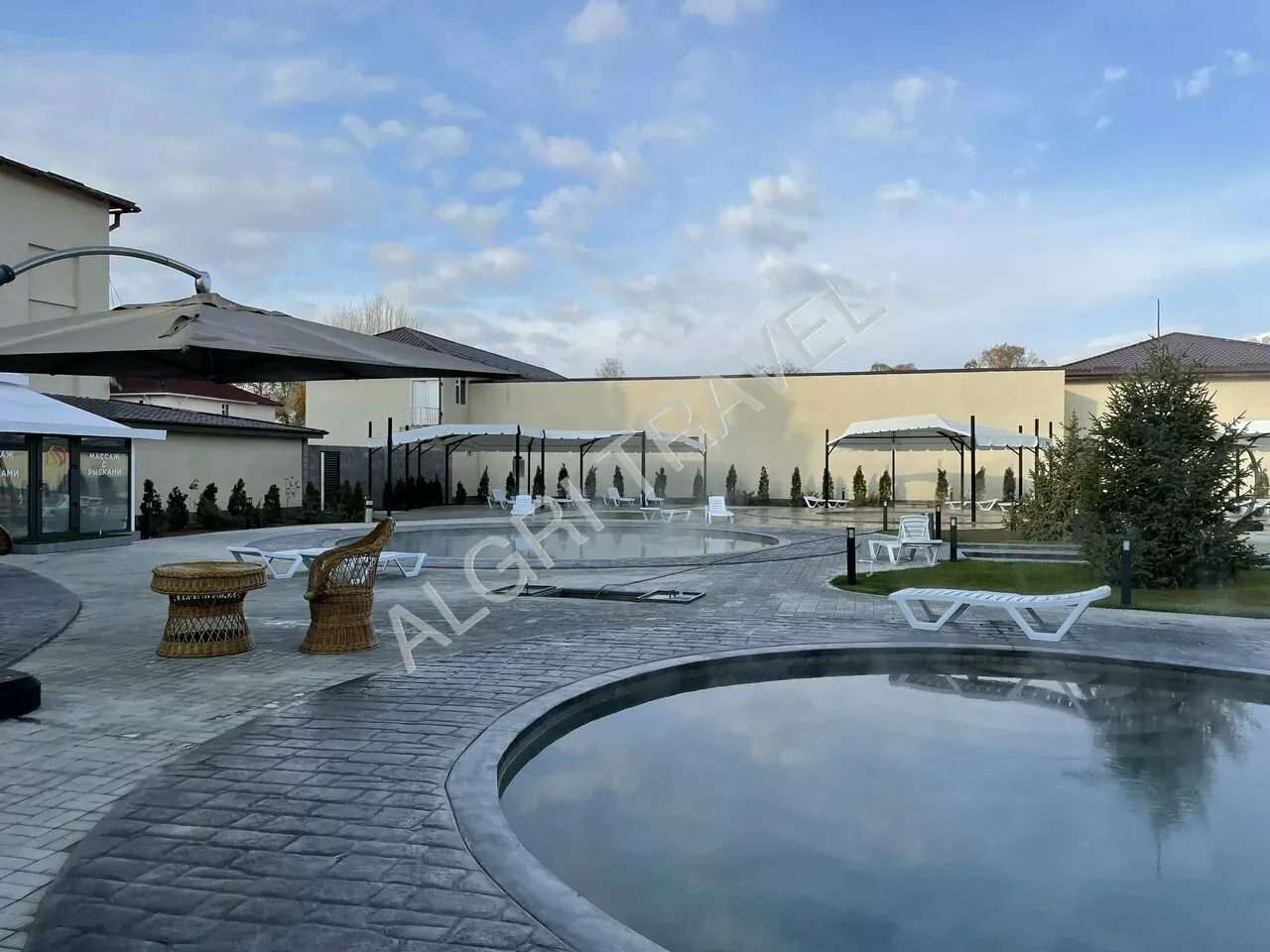 - Работает парилка и бассейн с термальной водой.