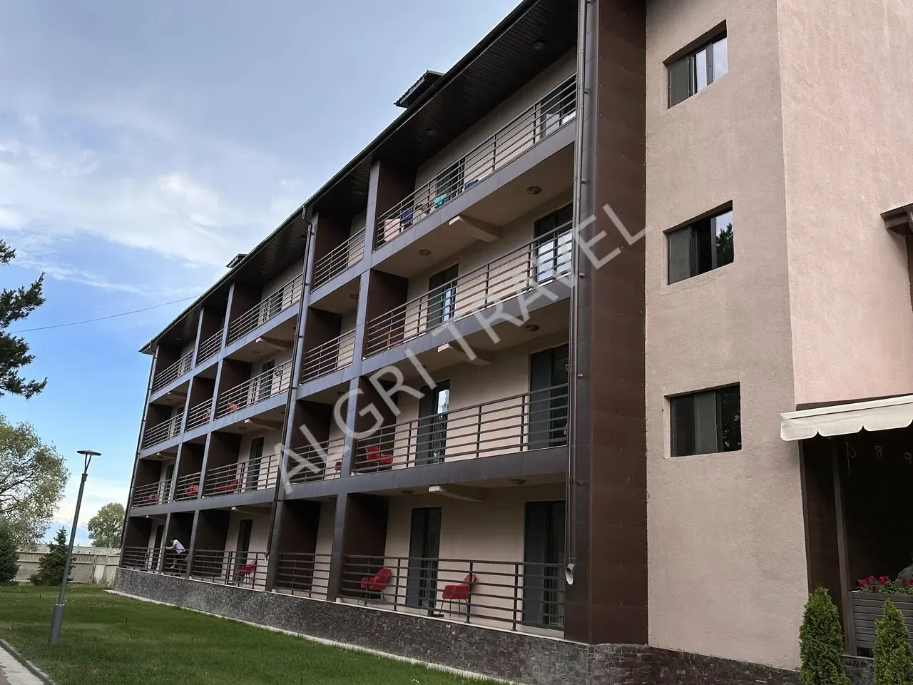 Современное четырехэтажное здание. Номера: полулюксы, люксы, семейные номера. В семейных номерах -раскладной диван. В корпусе: регистратура, магазины, Wi-Fi.