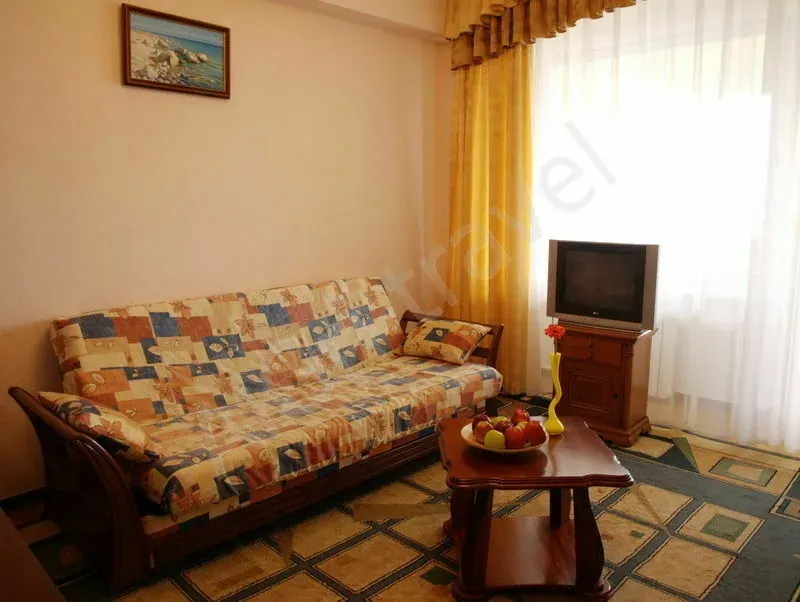 Комфортный хорошо оборудованный номер, свежий ремонт и интересный дизайн. В номере: санузел, холодильник, спутниковое телевидение, телефон, мягкая мебель, журнальный столик, чайный набор, набор полотенец, набор мини парфюмерии.