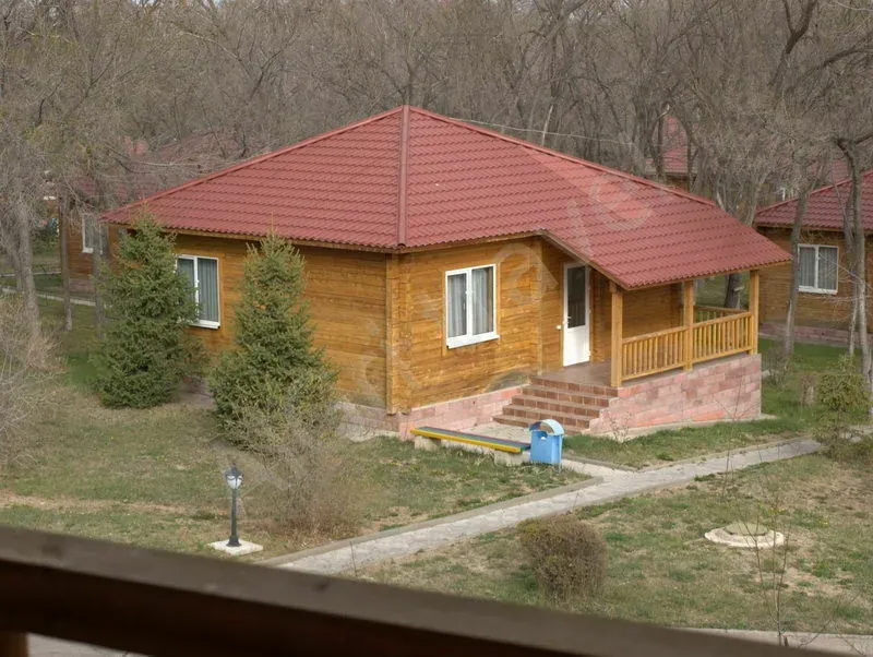 Первый уровень: прихожая, гостиной совмещенной с кухней (без плиты), ванная комната, 1 спальня. Второй уровень: 2 спальни, санузел, балкон. В доме современная мебель, телевизор со спутниковым телевидением, холодильник, телефон, утюг, гладильная доска, столовый и чайный сервиз. В стоимость входит только проживание. Один VIP коттедж рассчитан на шесть человек. Всего 3 VIP коттеджа. Медицинские услуги и питание не включены в стоимость.