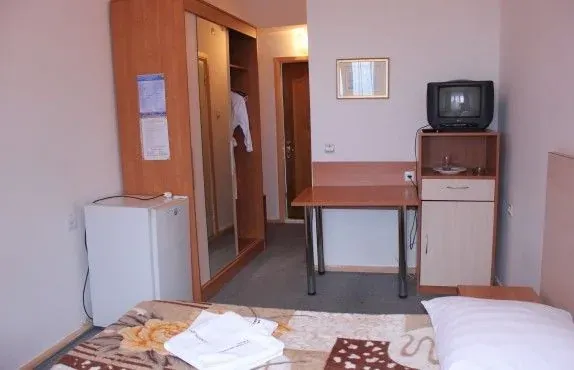Однокомнатный номер, все номера после евроремонта, итальянская мебель. В номере 2 односпальные кровати или одна двуспальная (в одноместном номере одна односпальная кровать), холодная и горячая вода круглосуточно, отдельный санузел с душем, TV, холодильник, телефон.