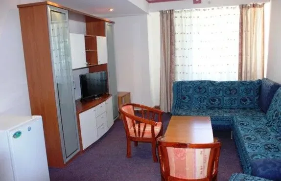 Номер расположен на северной стороне без балкона состоит из прихожей, спальни, гостиной комнаты санузел с лежачей ванной. В комнате находится односпальная кровать, мягкая мебель, сервант для посуды мягкие кресла, журнальный столик, TV, посуда в наборе, холодильник