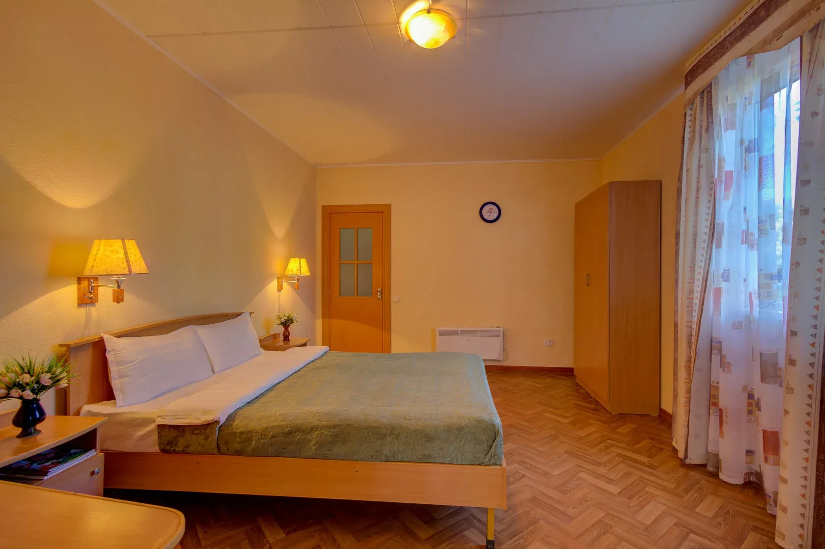 Двухкомнатный семейный номер (4-местный) — удобный вариант для размещения семьи или небольшой компании. Номер состоит из двух изолированных спальных комнат: с одной двуспальной кроватью и двумя полуторными кроватями.