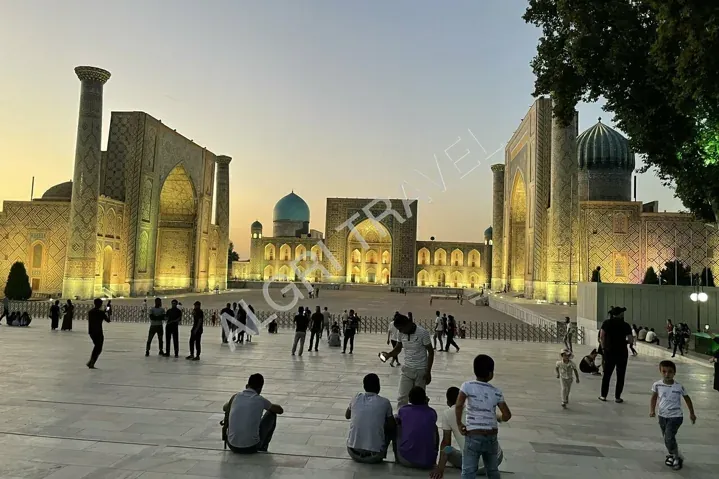 Самарканд: ансамбль Регистан, мечеть Биби Ханум, комплекс Шахи Зинда, мавзолей Гур Эмир, обсерватория Улугбека.