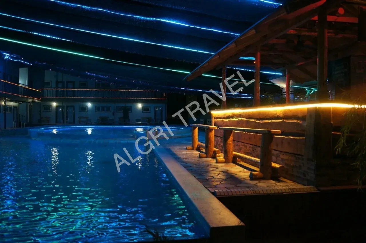 - Открытый бассейн – длинна 10 м, ширина 4 м, глубина 1.5 м, температура: 35-38 С