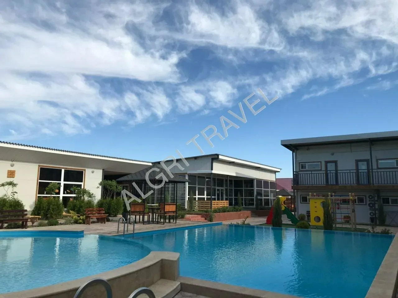 7 номеров в корпусе люкс с отдельным крытым и открытым бассейном.Завтрак в Кафе или в номере включен в стоимость . В номерах: душ, санузел, холодильник, кондиционер, телевизор, обеденная зона на компанию, микроволновка, чайник.Также в каждом номере есть полотенце для каждого Гостя, мыло, туалетная бумага.