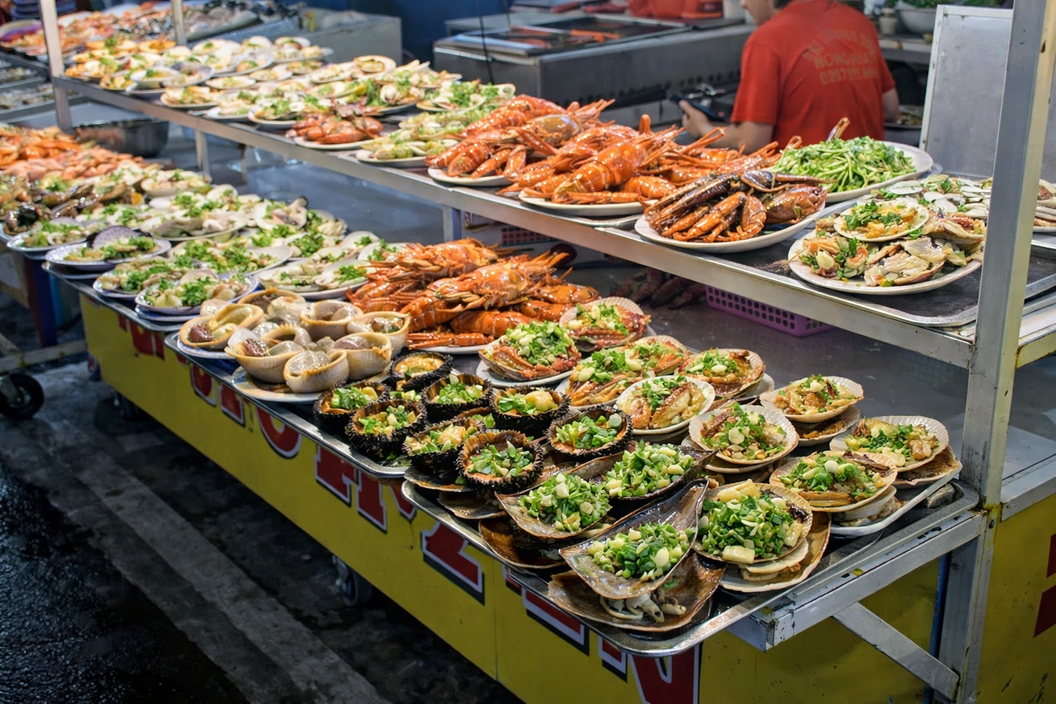 Место, где можно попробовать морепродукты и уличную еду.
