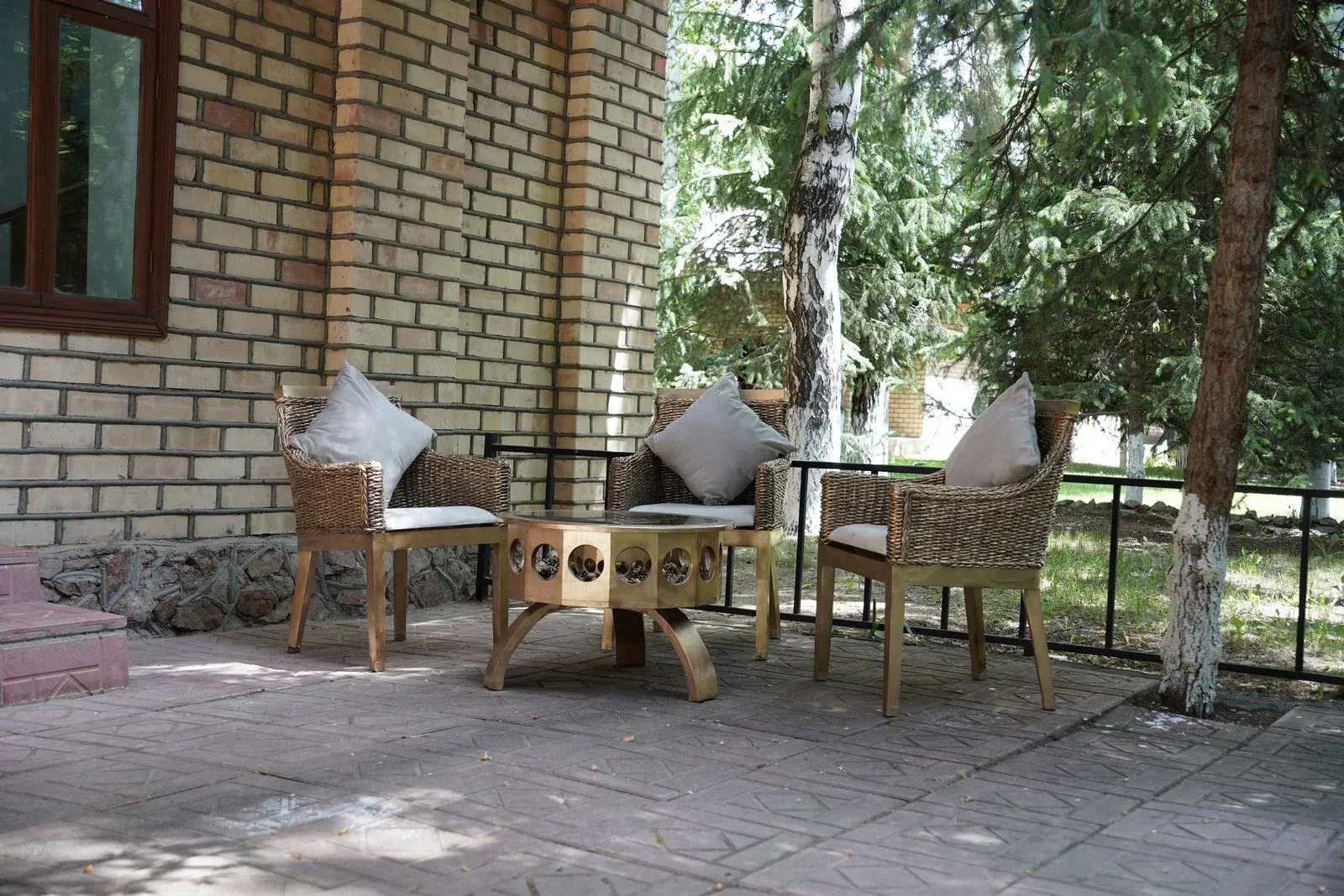 - собственный двор с бамбуковой мебелью и качелями