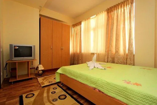 - Квартира Люкс 2-х комнатная, 2-х местная. Максимальное размещение 4 человека. В номере: спальня с двумя кроватями и шкафчиком, гостиная с мягкой мебелью, кухня, санузел и душ с горячей водой.